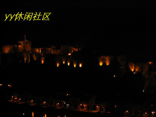 我们发现古堡入口处火把闪耀,仿佛有人正在进堡参观,于是匆忙冲下楼,以为古堡夜间仍然开放.在前台询问ERIC,他说夏天的时候晚上古堡对团体开放,不过需要20人以上并且提前预约,对散客这么晚已经不开放了.不过我们不甘心,开车赶到了对面山顶的古堡,想一探究竟...